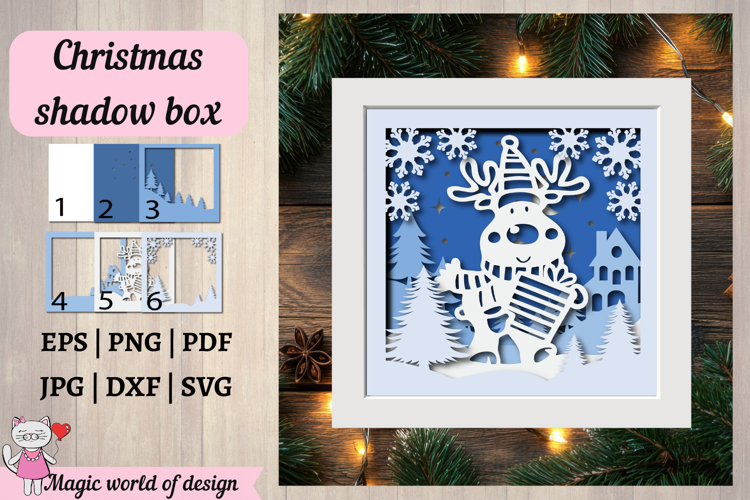 Christmas Deer Shadow Box SVG, Svg For Cricut example image 1