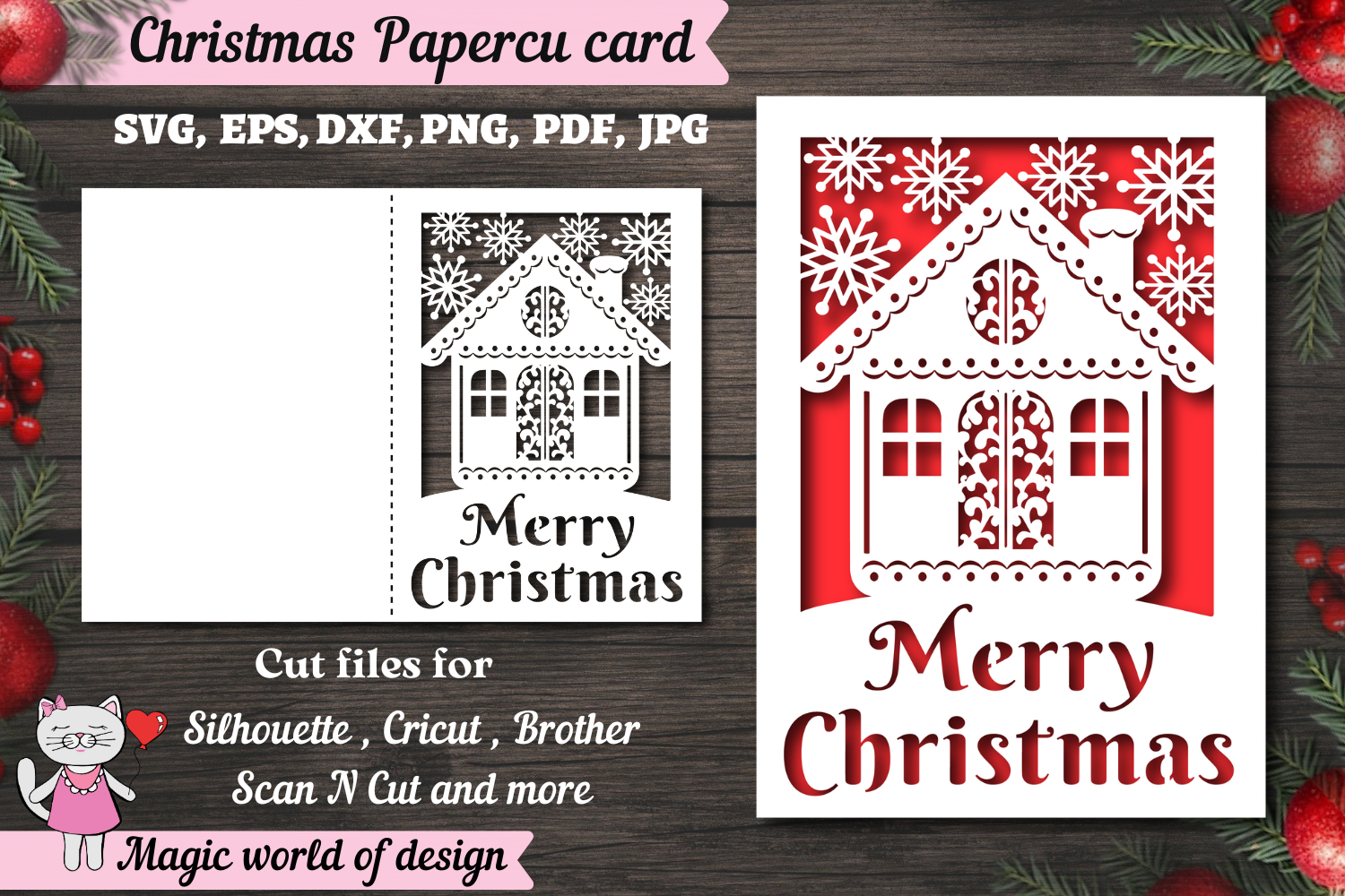 Merry Christmas house SVG fold card 5x7, Christmas Greeting