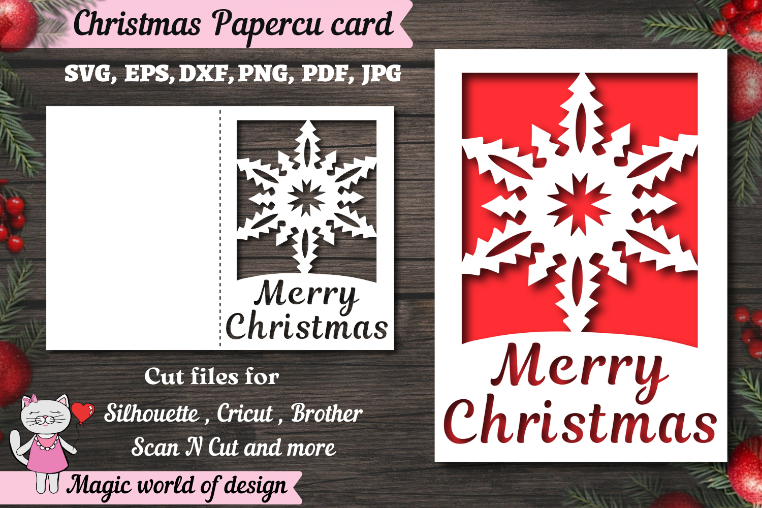 Christmas snowflake card svg, xmas Papercut Card example image 1