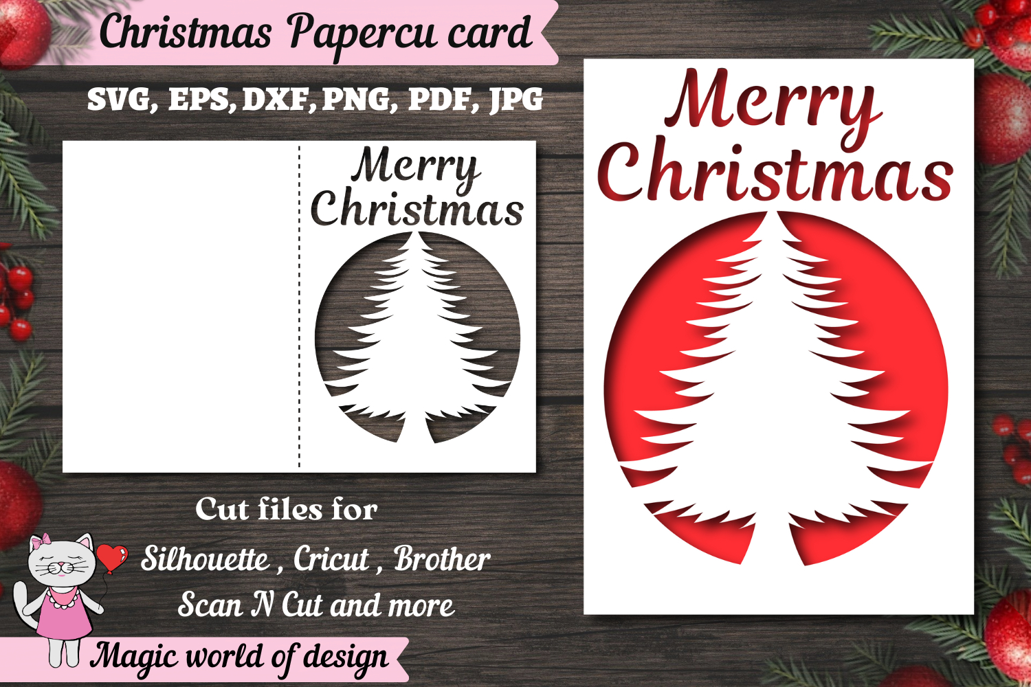 Christmas tree card svg, xmas Papercut Card
