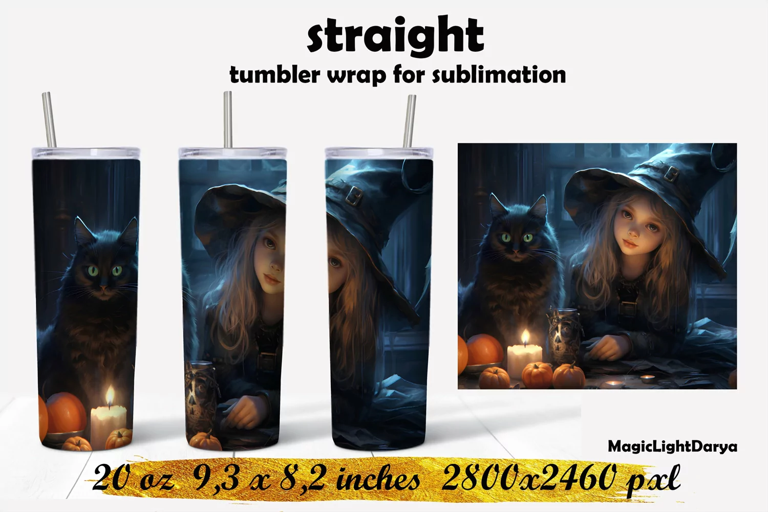 Witch the black cat tumbler ,Halloween tumbler design example image 1