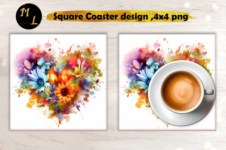 Square Coaster Daisies Sublimation Coaster Sublimation Spring Coaster Flowers Coaster Square Coaster Sublimation Heart Square Coaster Watercolor Square Coaster Flower Square Coaster Design Spring Coaster Sublimation