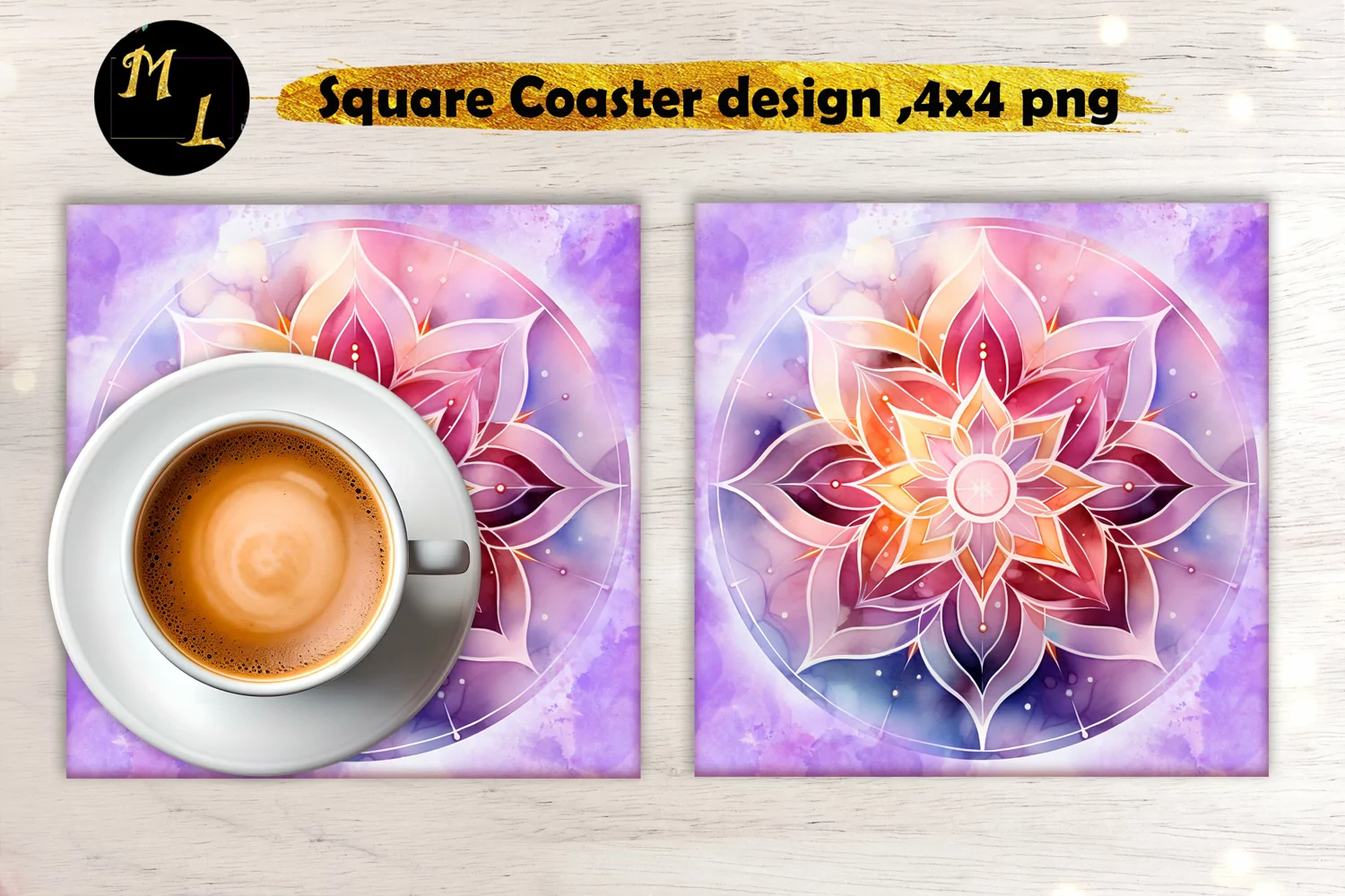 Watercolor Mandala Coaster design,Mandala Square Coaster example image 1