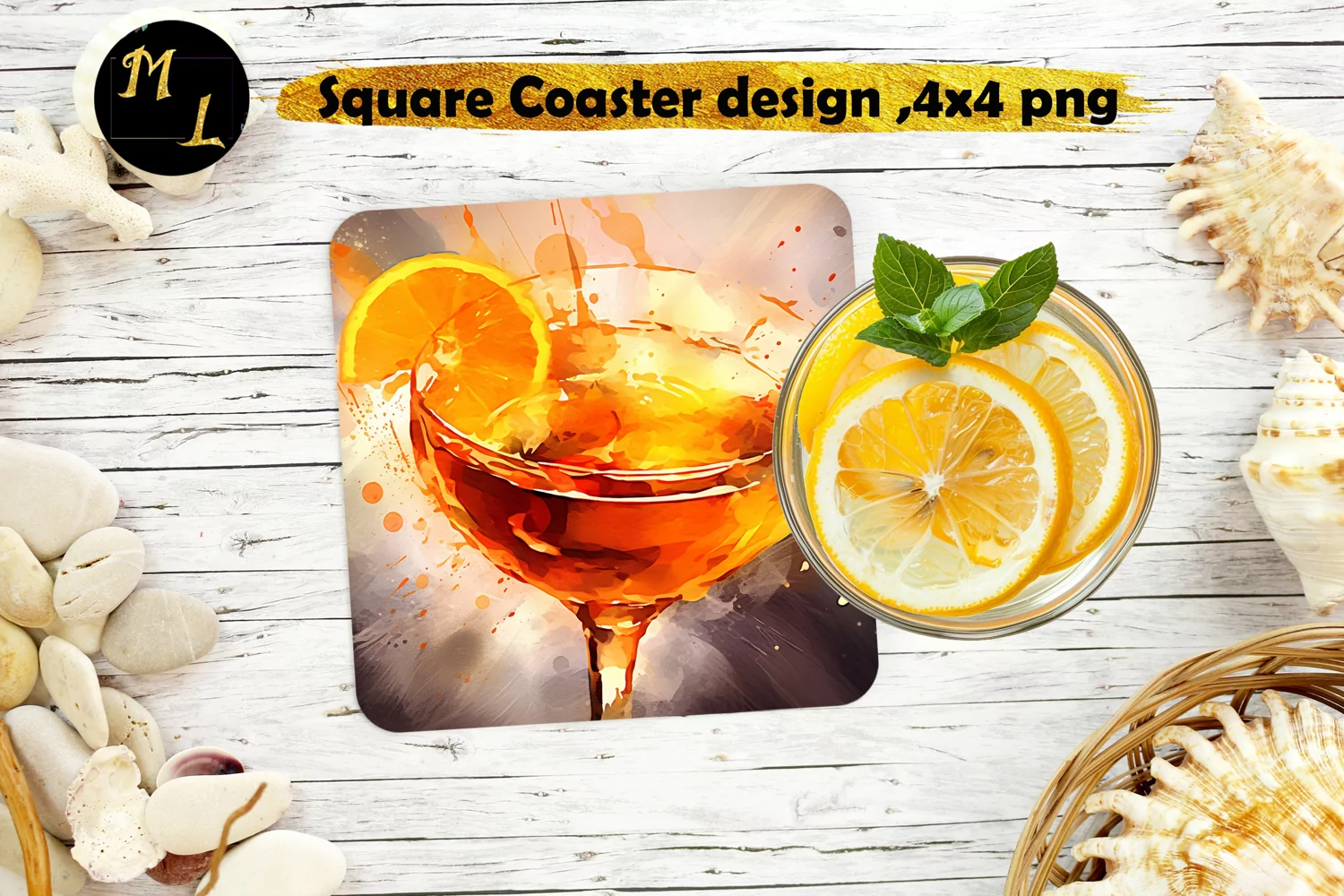 Orange Cocktail Square Coaster design,Cocktail Coaster png
