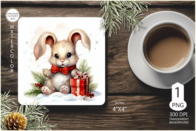 Bunny Clipart Christmas Bunny Clipart Winter Bunny Png Clipart Xmas Bunny Png Clipart Winter Bunny Prints Watercolor Christmas Bunny Png Files Watercolour Cute Bunny Clip Art Mug Coaster With A Hare And A Christmas