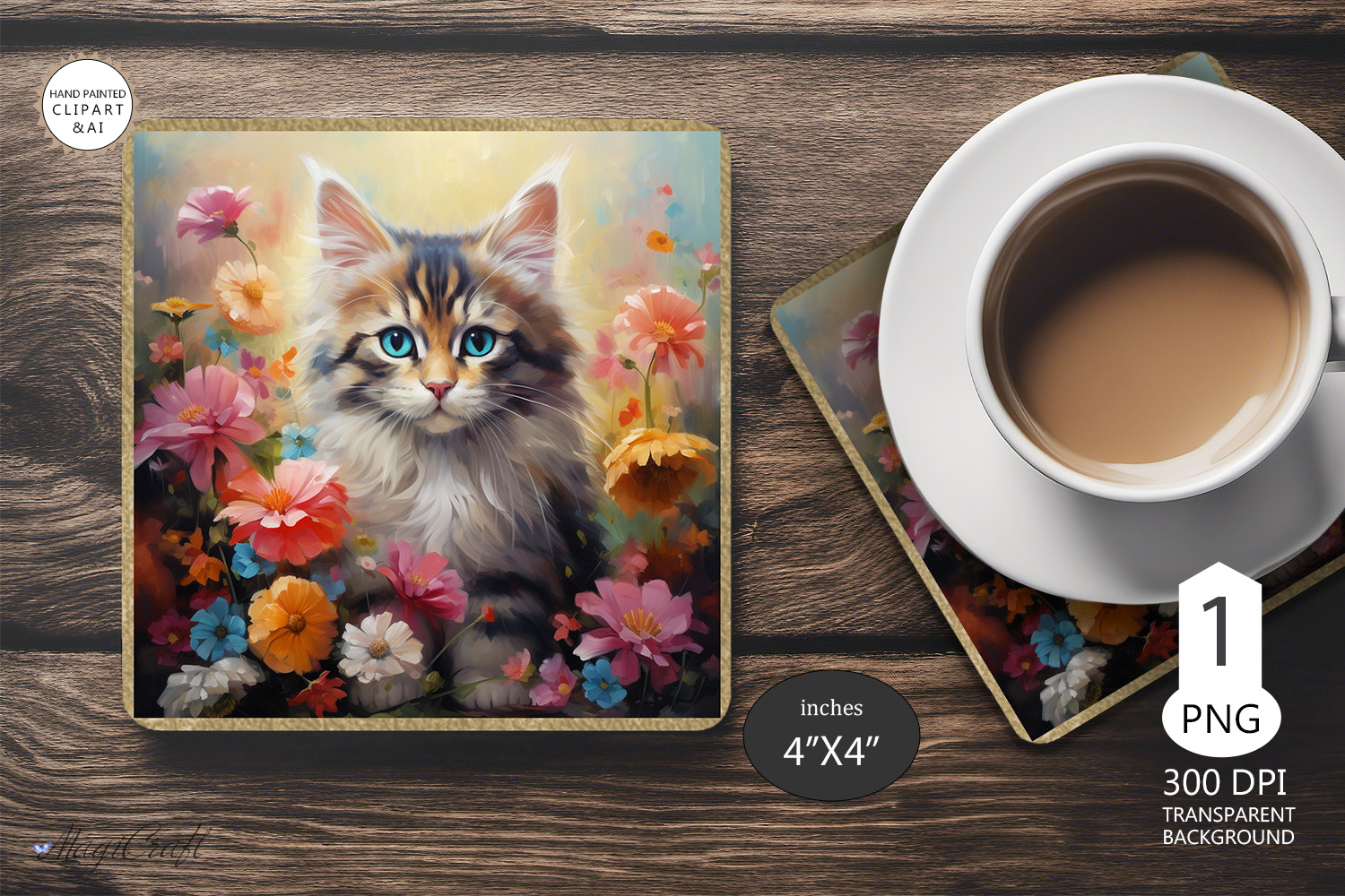 Mug coaster with Rose|cat Coaster Mug Sublimation | flowers