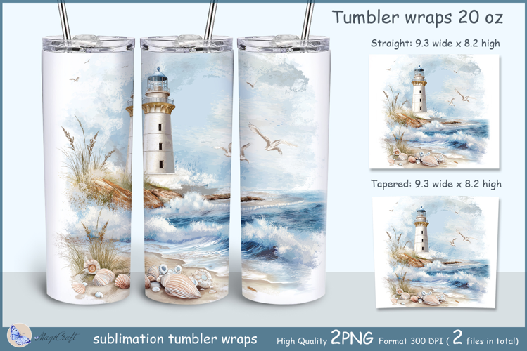 Lighthouse tumbler Sublimation| sea tumbler| sea of seagulls example image 1