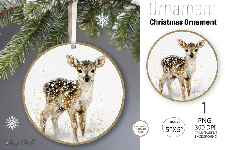 Christmas Deer Ornament| Vintage Round Ornamen|fawn clipart