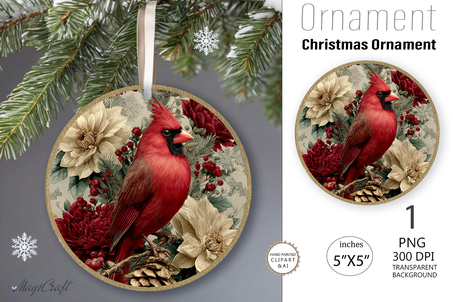 Merry Christmas Ornament| Round vintage Ornament cardinalis