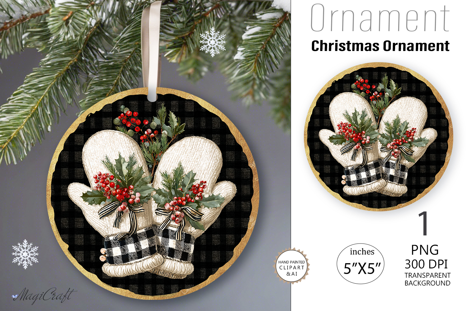 Knitted gloves Christmas Ornament|Round Ornament sublimation example image 1