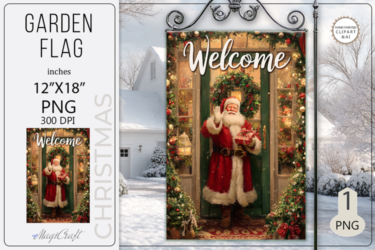 Garden flags welcome| Garden Flag Sublimation|Santa Claus example image 1