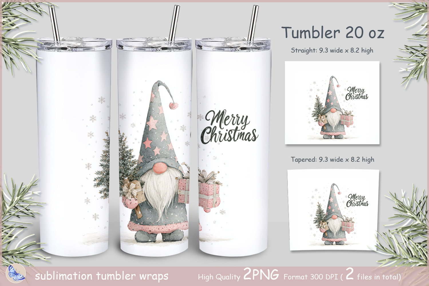 Christmas Tumbler gnome| white Wrap Tumbler Merry Christmas example image 1