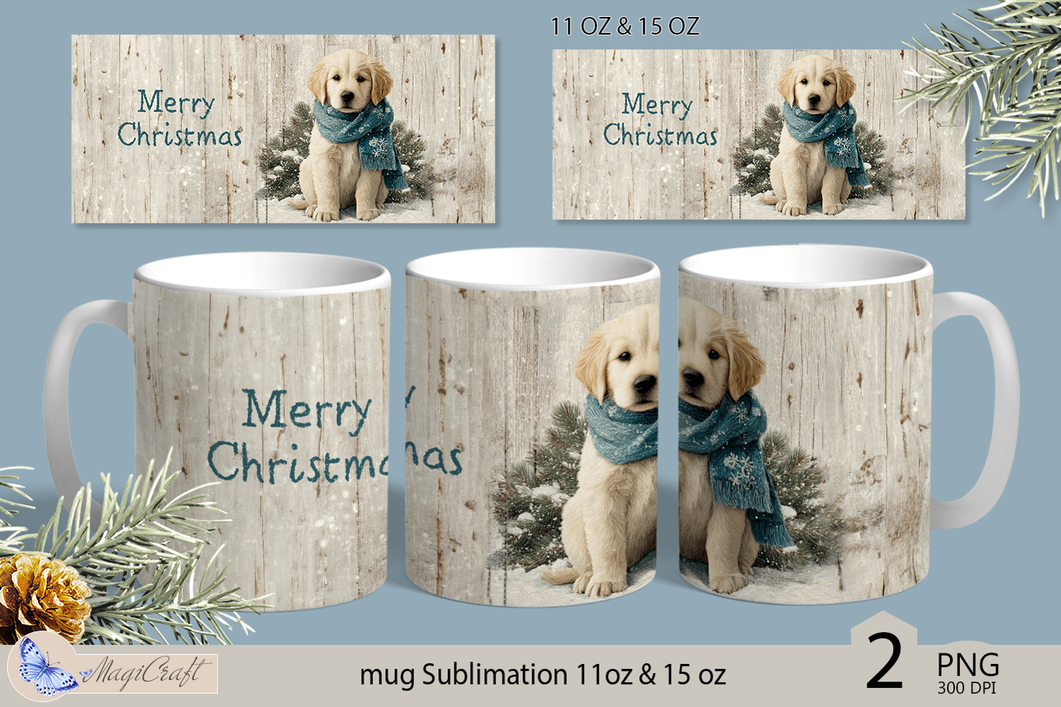 Dog Mug Sublimation Christmas Dog Mug Wrap Cute Animals Mug Wrap Vintage Mug Wrap With Sublimation Animals Mug Sublimation Design Cute Dog Coffee Mug Wrap Designs Cute Puppies Mug 11oz 15 Oz Sublimation Cute Labrador Puppy In A Blue Scarf Mug Wrap Merry Christmas Dog Mug Wrap