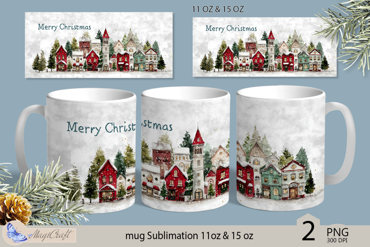 Mug Wrap Christmas village Sublimation|Mug Christmas city example image 1