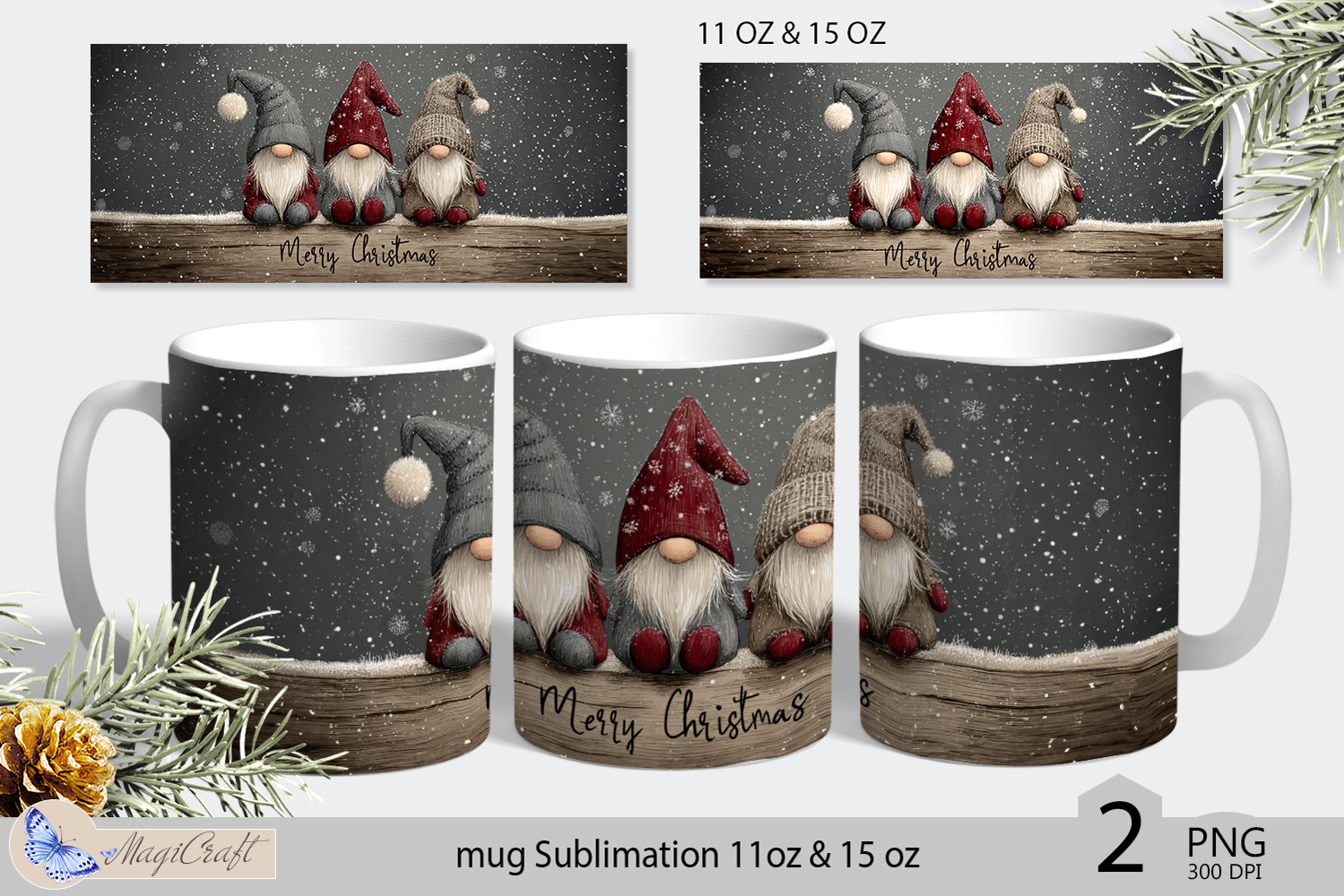 Gnomes Mug Christmas Sublimation| Design Mug Wrap 11oz 15oz example image 1