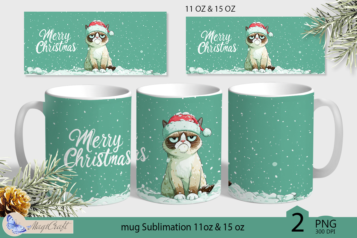 Grumpy cat mug wrap Sublimation|Merry Christmas cat mug wrap example image 1