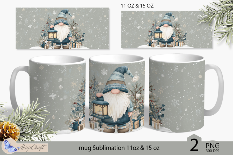 Gnome Mug Christmas Sublimation| Design Mug Wrap 11oz 15oz example image 1