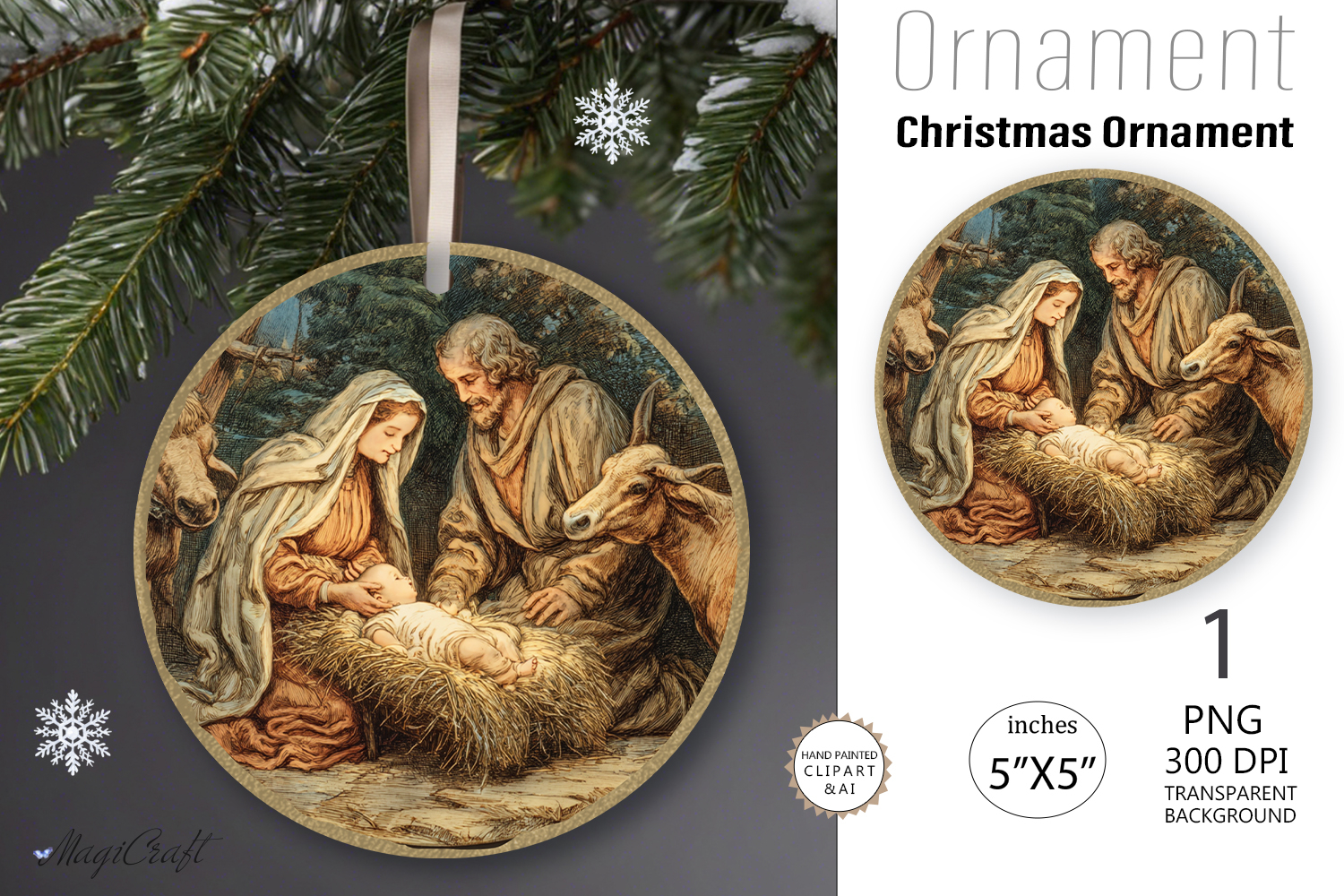 Round Christmas Nativity Ornament|Ornament Nativity Scene example image 1