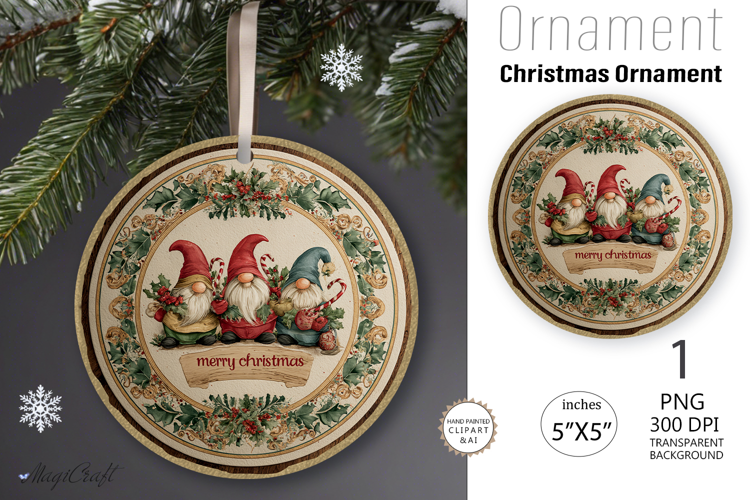 Christmas gnomes Ornament| Round Ornament sublimation print example image 1