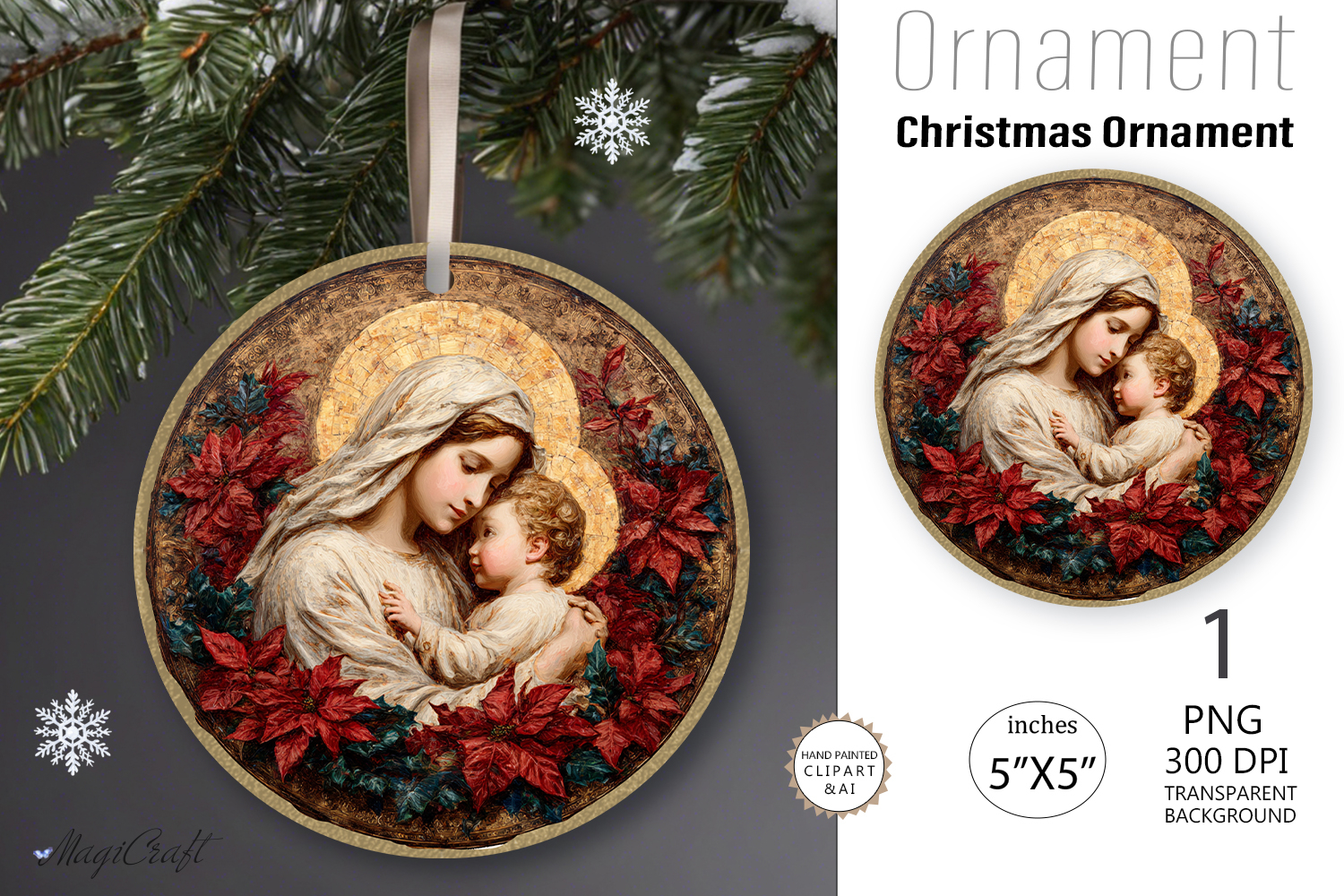 Christmas Nativity Scene|Round Ornament| Mary and Jesus example image 1