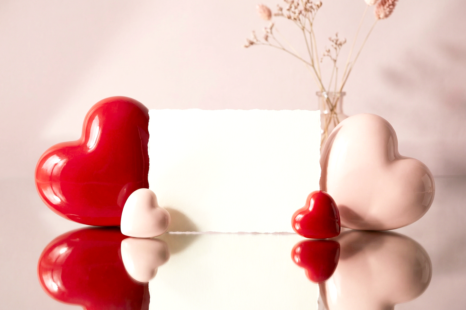 High-quality horizontal layout of romantic Valentine's Day greeting card with hearts. Perfect for showcasing greeting card designs, invitations, quotes, typography, branding, and creative love-themed projects.