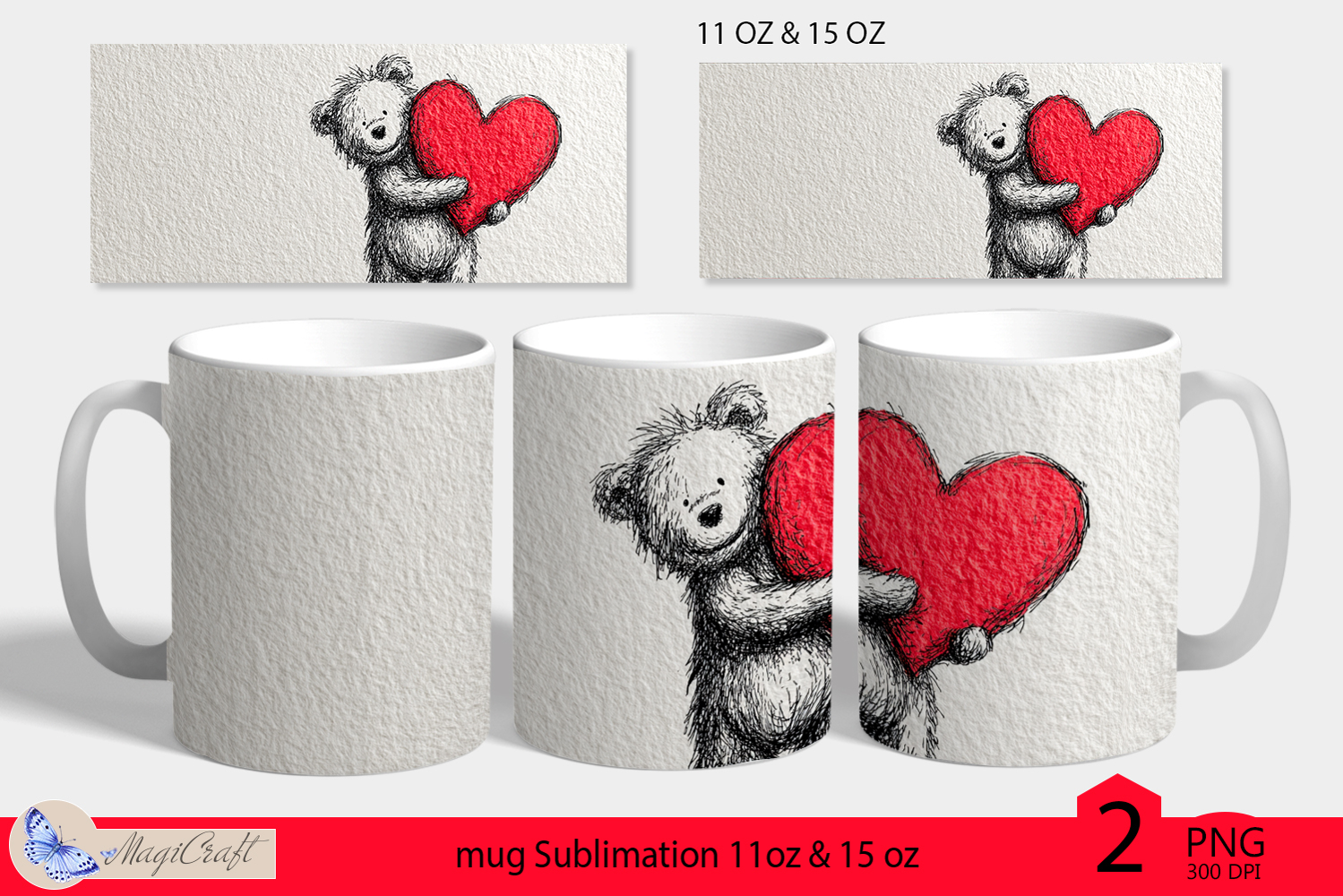 LOVE mug wrap Sublimation|teddy bear mug wrap|hearts decor example image 1