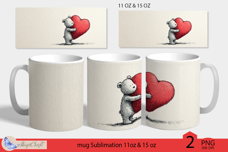 LOVE mug wrap Sublimation|teddy bear mug wrap|hearts decor example image 1