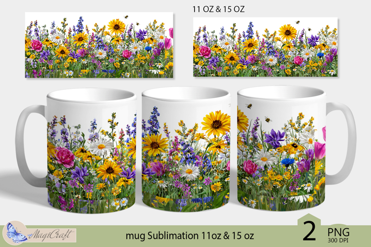 Wildflowers mug Sublimation|flowers mug 11oz 15oz| Flora mug example image 1