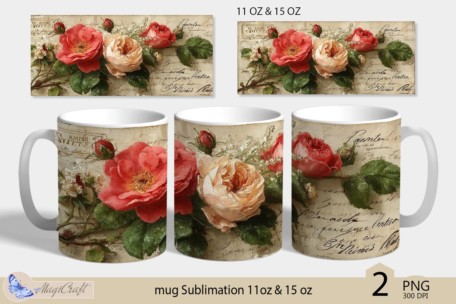 Roses mug Sublimation|flowers mug 11oz 15oz| Flora mug png
