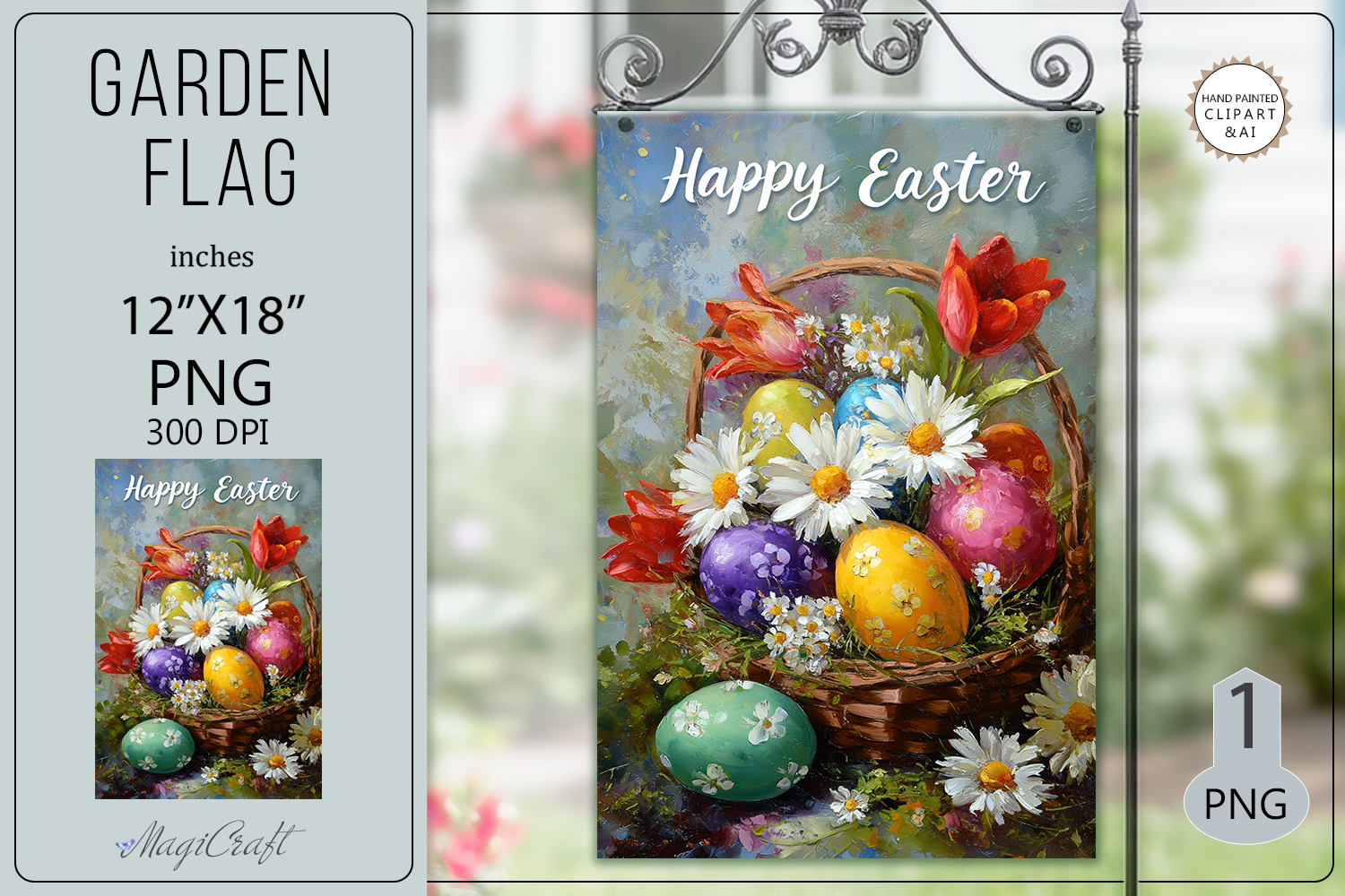 Happy Easter Garden flags|wildflowers in a basket Easter egg