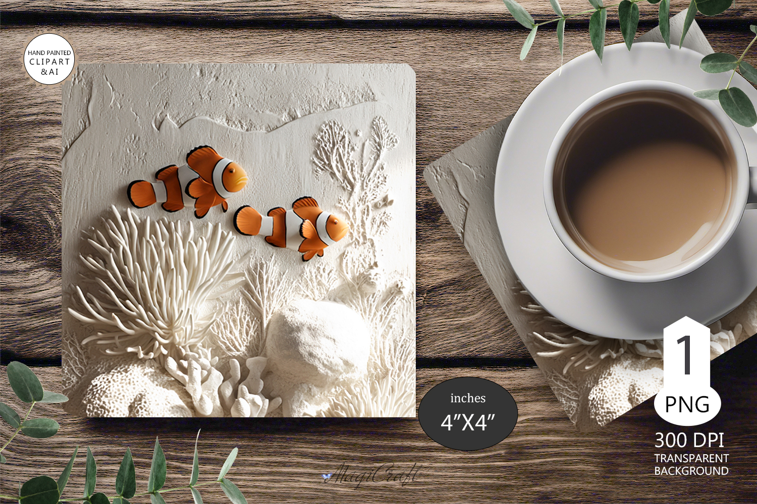 Marine fish Mug coaster| Coaster Mug Sublimation| seashells example image 1