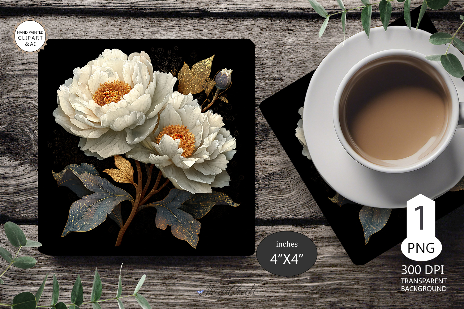 Mug coaster white peonies| Mug Coaster Sublimation flowers
