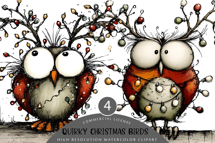 Quirky Christmas Birds Clipart | Funny Festive Bird PNG example image 1