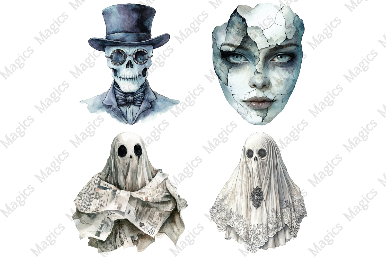 Similar Design Products to Antique Halloween Ghost Clipart Bundle