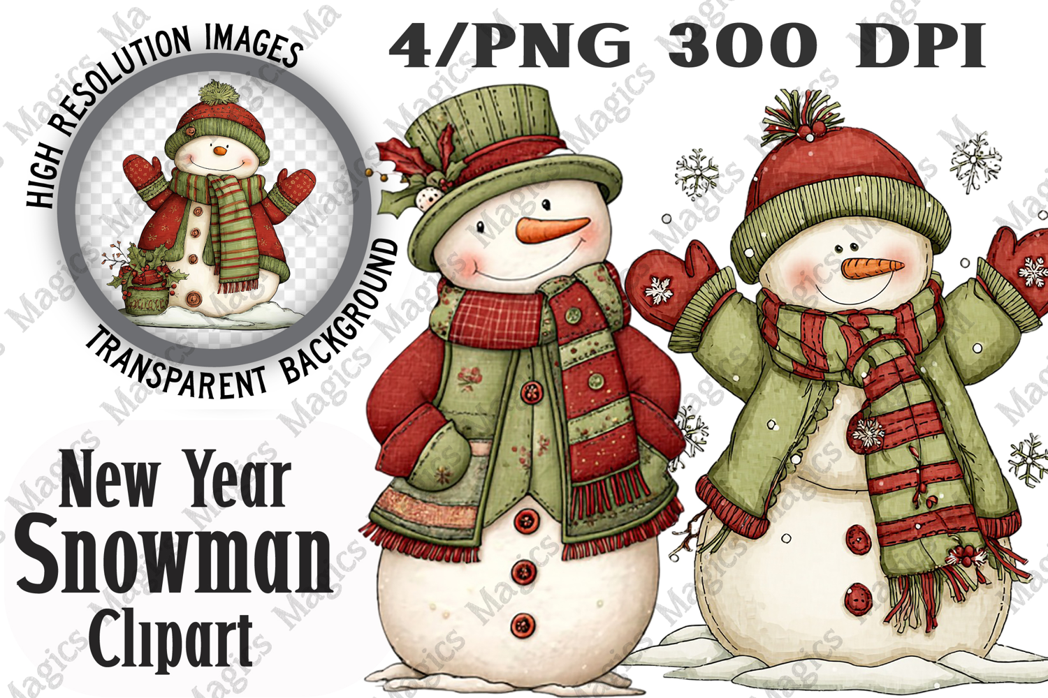 New Year Snowman Clipart Sublimation