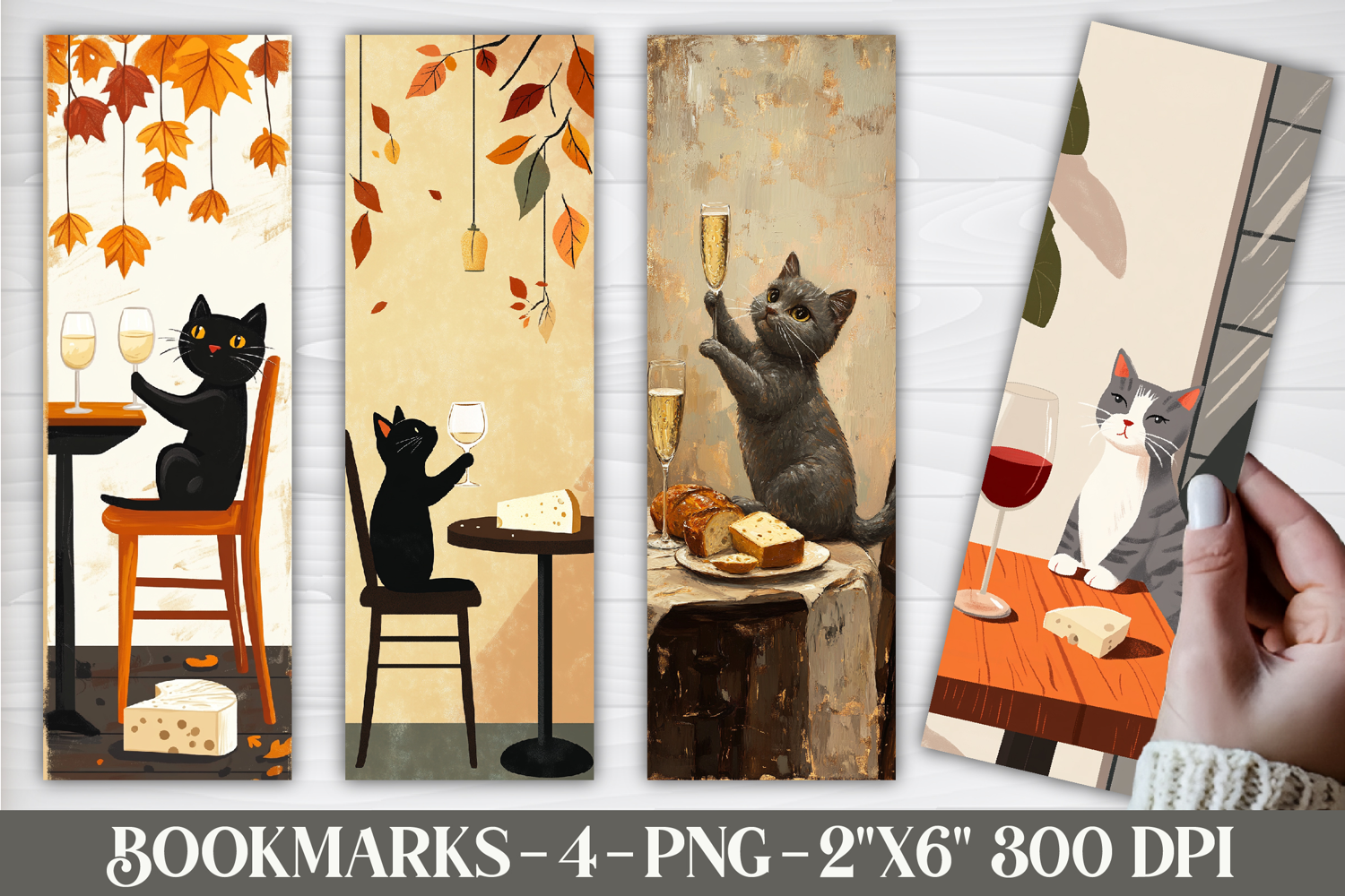 Wine Cats Printable Bookmarks example image 1
