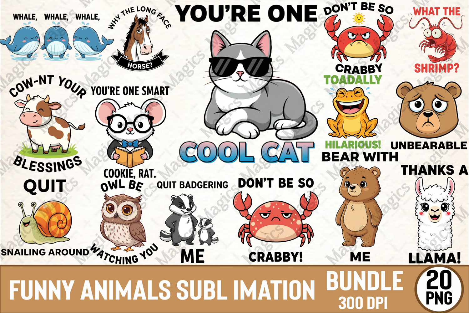 Funny Animals Quote Sublimation Bundle, Funny PNG Designs