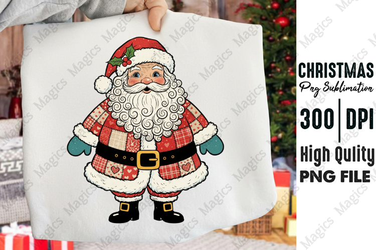 Cozy Patchwork Santa Claus Christmas PNG example image 1