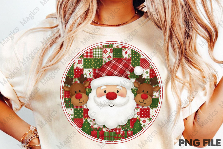 Christmas PNG Round Patchwork Santa PNG