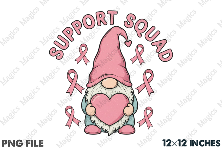 Support Squad Gnome Cancer Awareness PNG example image 1