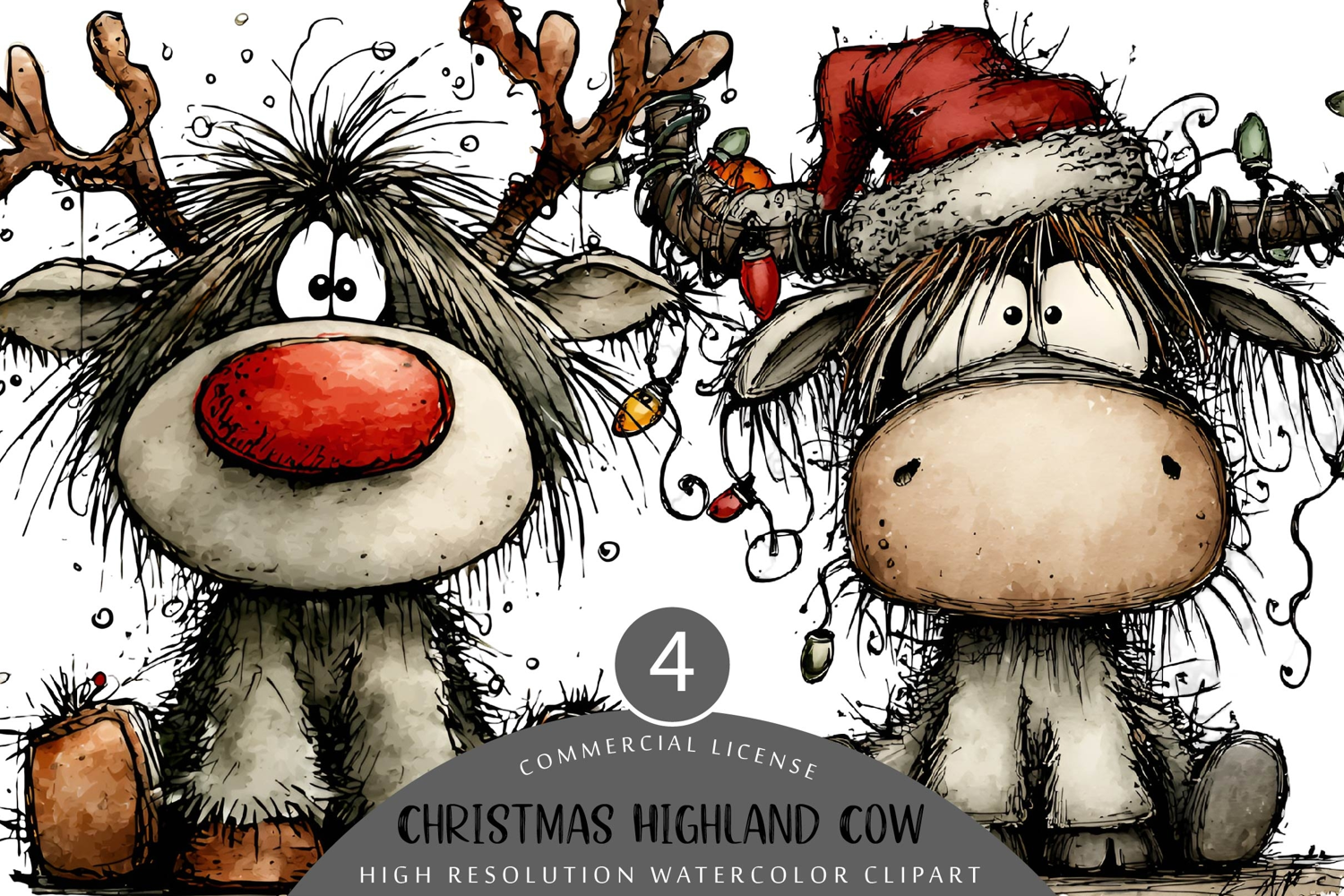 Quirky Christmas Highland Cow Clipart | Funny Festive Farm example image 1