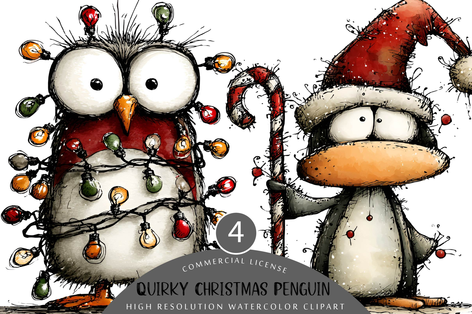 Quirky Christmas Penguin Clipart | Funny Holiday Penguins example image 1