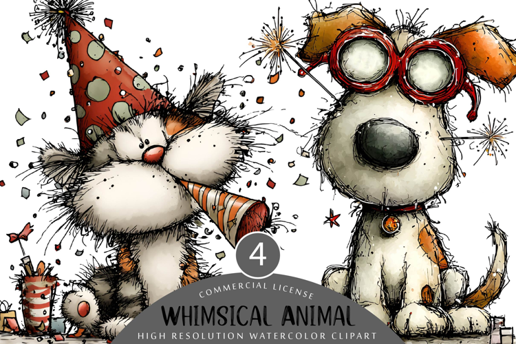 Whimsical New Year Animal Clipart | Cute Party Animals PNG example image 1