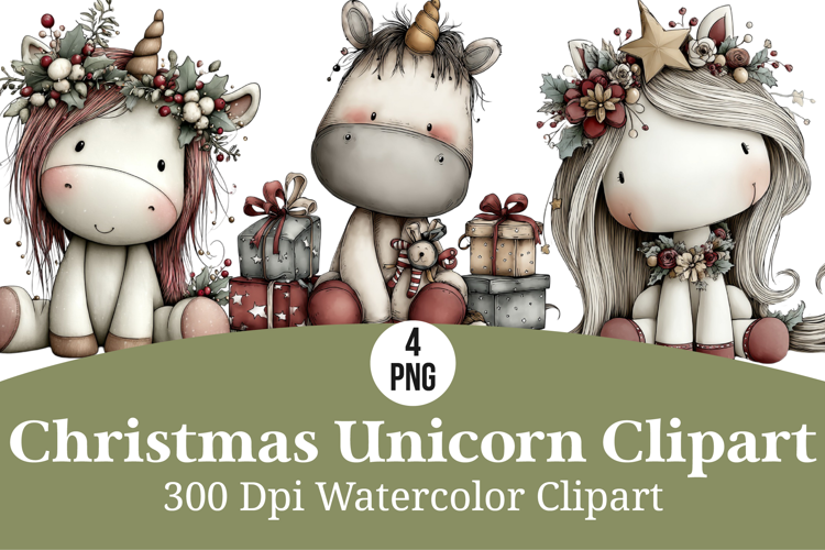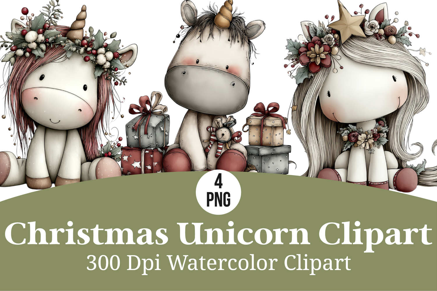 Christmas Unicorn Clipart, Christmas Sublimation PNG example image 1