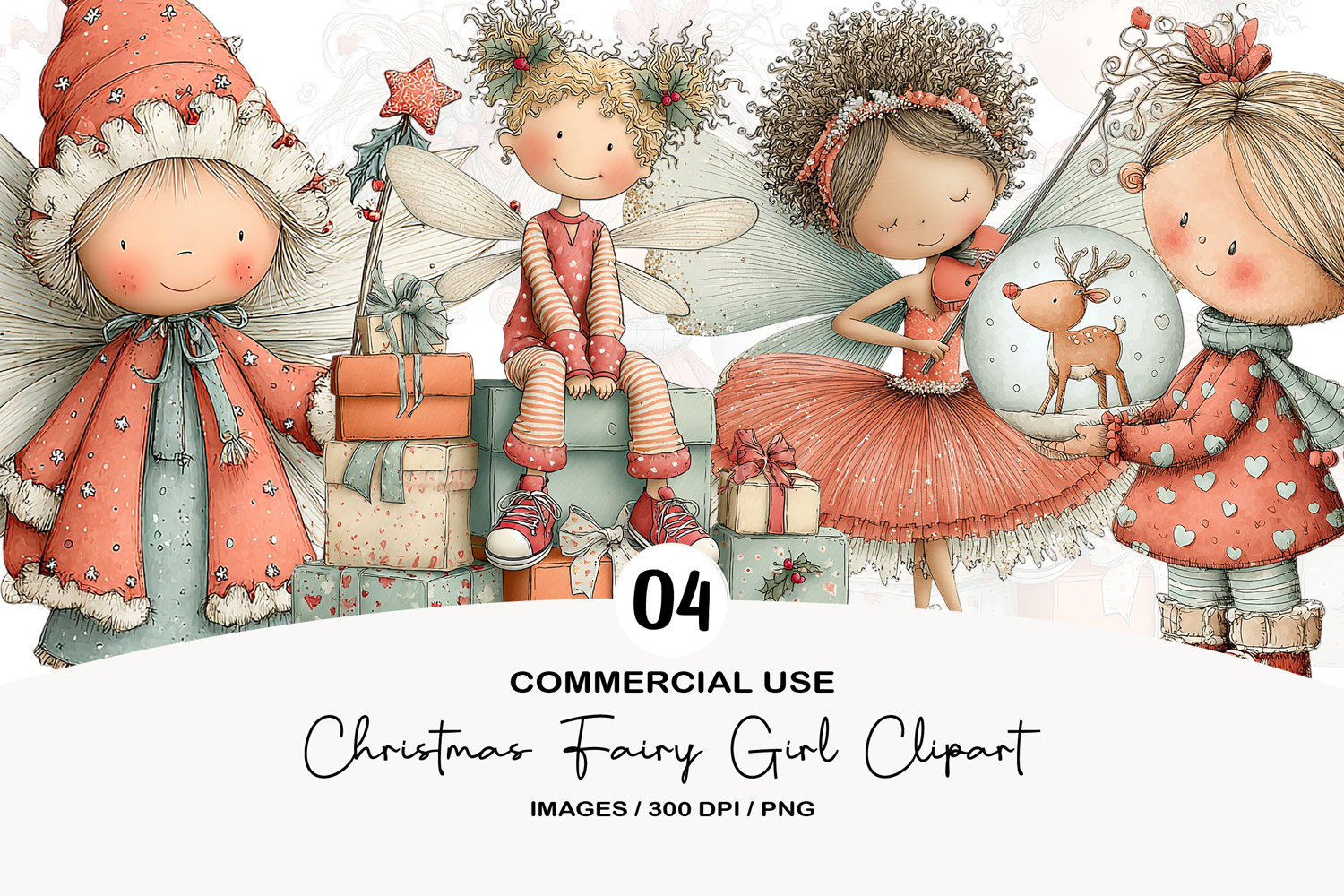 Christmas Fairy Girl Clipart Sublimation