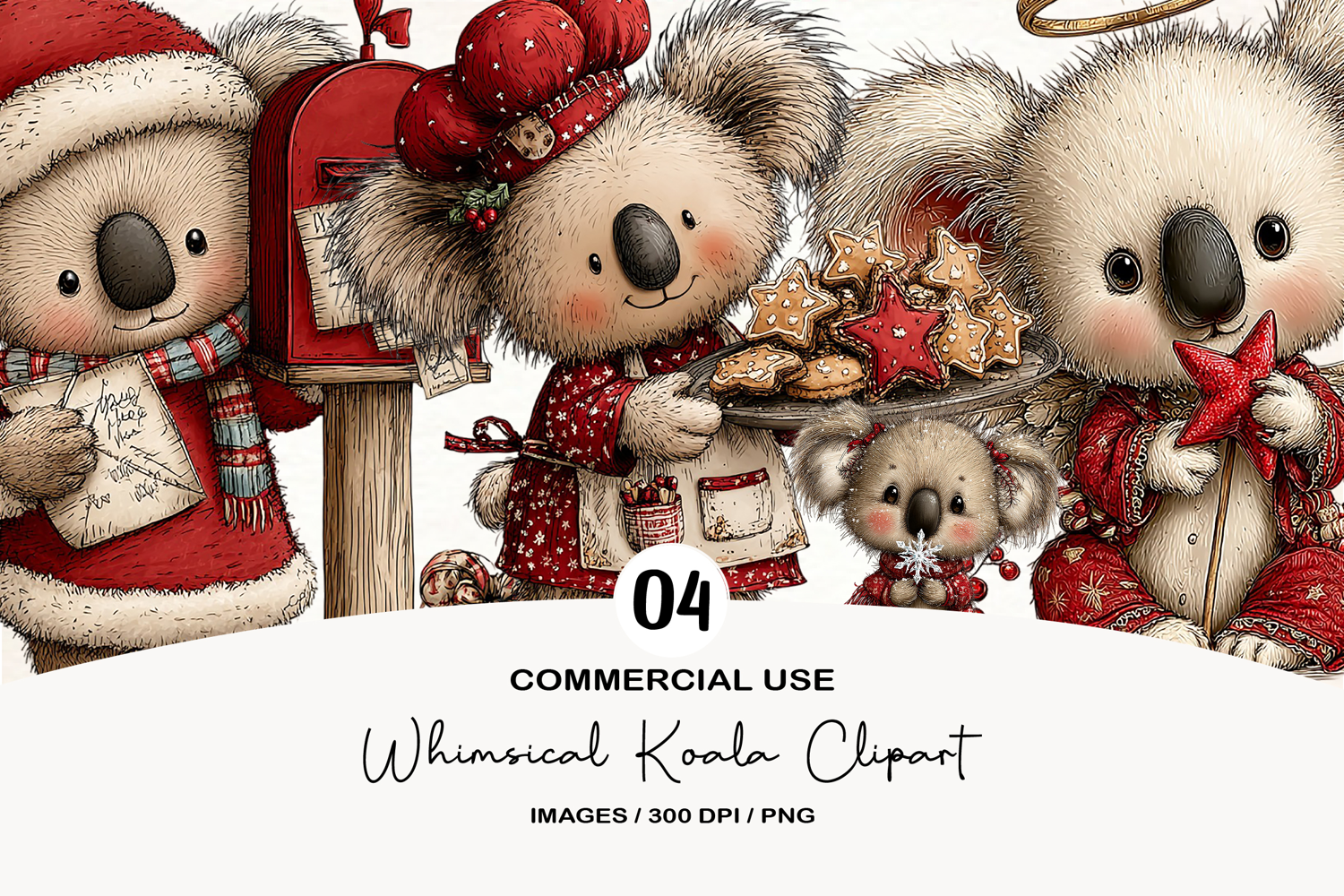Whimsical Christmas Koala Clipart