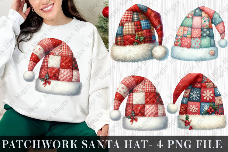 Similar Design Products to Christmas Patchwork Santa Hat Clipart