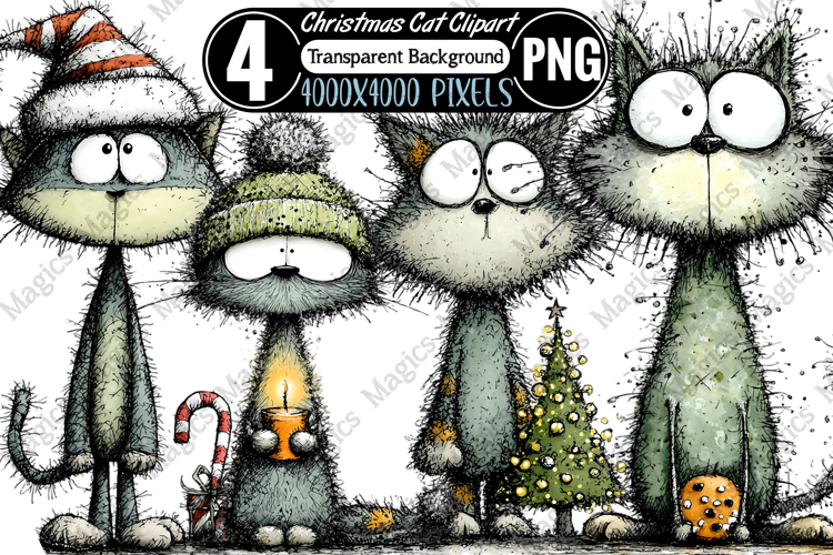 Christmas Cat Clipart Sublimation example image 1