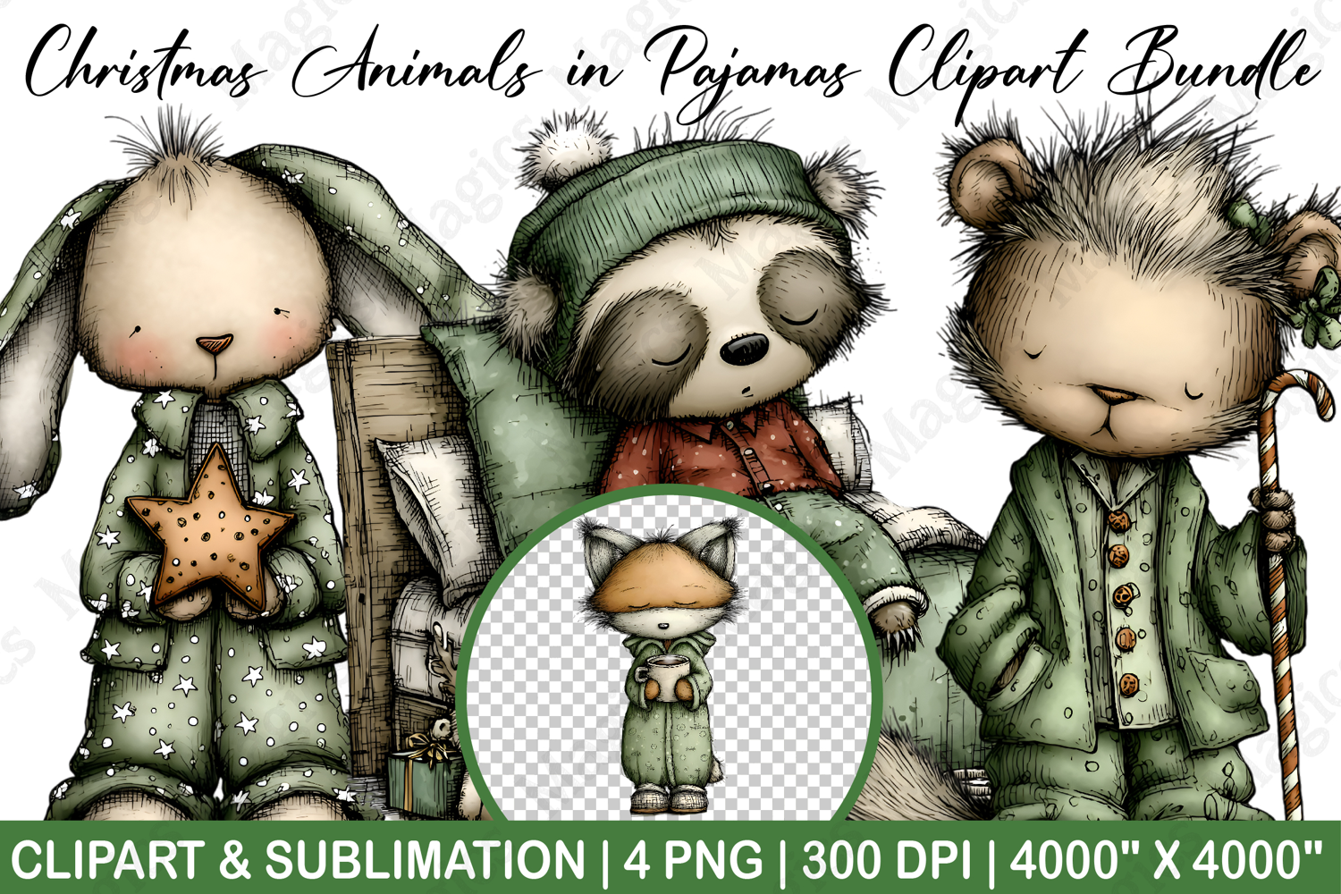 Christmas Illustrations Clipart Png Christmas Png Christmas Animals Christmas Santa Whimsical Christmas Sublimation Design Clipart Sublimation Animals Sublimation Christmas Animals In Pajamas Sublimation