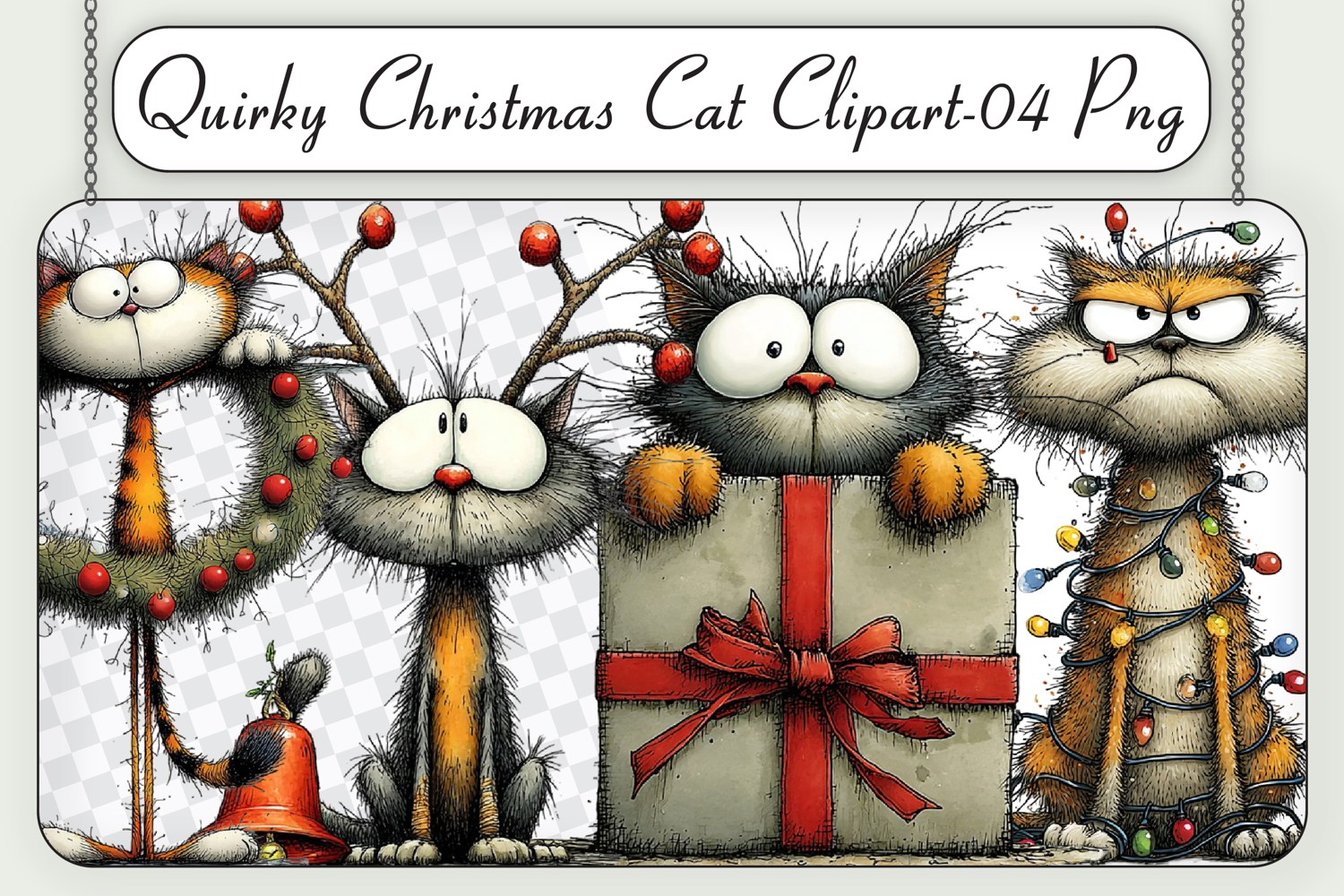 Quirky Christmas Cat Clipart Sublimation example image 1
